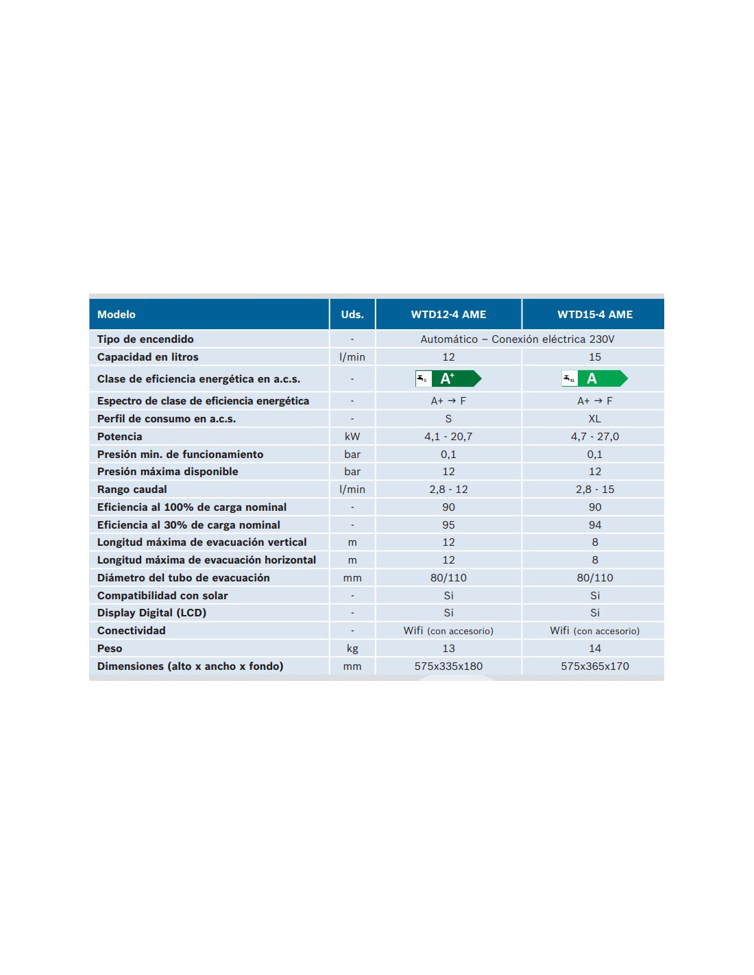 DISPONIBLE PARA GAS NATURAL, con caudal de 12 o 15 litros, selecciona el modelo: